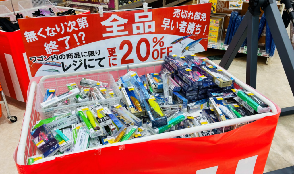 ワゴン内ルアー全品20%OFFワゴンセールも開催中です!!