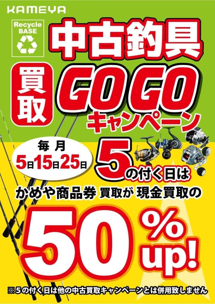 本日は5の付く日!!中古釣具🎯『買取GOGOキャンペーン』🎯実施中!!-かめや釣具延岡店-