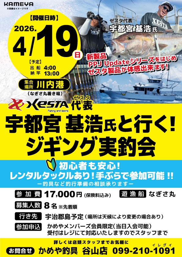XESTA(ゼスタ)代表 宇都宮基浩氏と行くジギング実釣会!