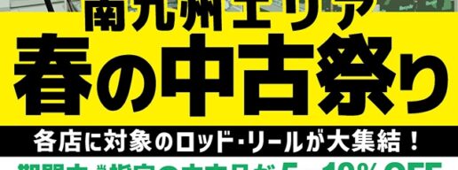 お世話になっております! 鹿児島姶良店の横山です。 この度、4/3(金)~4/26(日)までの期間、 当店指定のRR(ロッド・リール)が5~10%引きとなる 「春の中古祭り」を開催いたします! 今回の「中古祭り」に向 … 続きを読む 「春の中古祭り」を開催いたします! 鹿児島姶良店