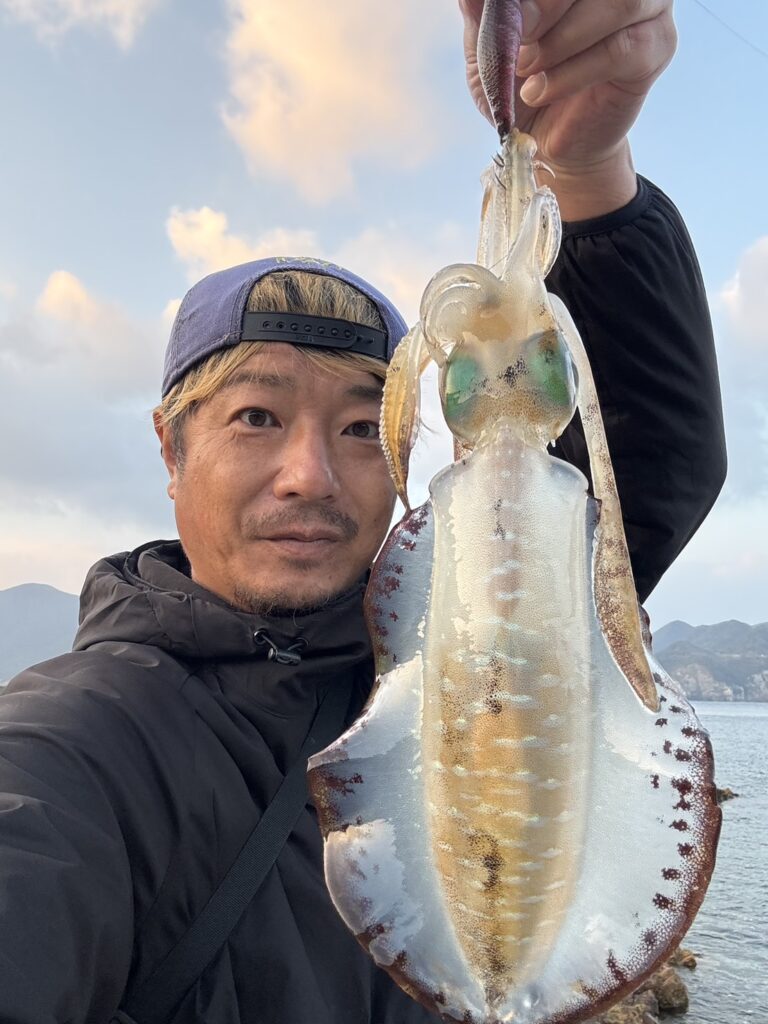 エギングとピュアに向き合うプロスタッフ。