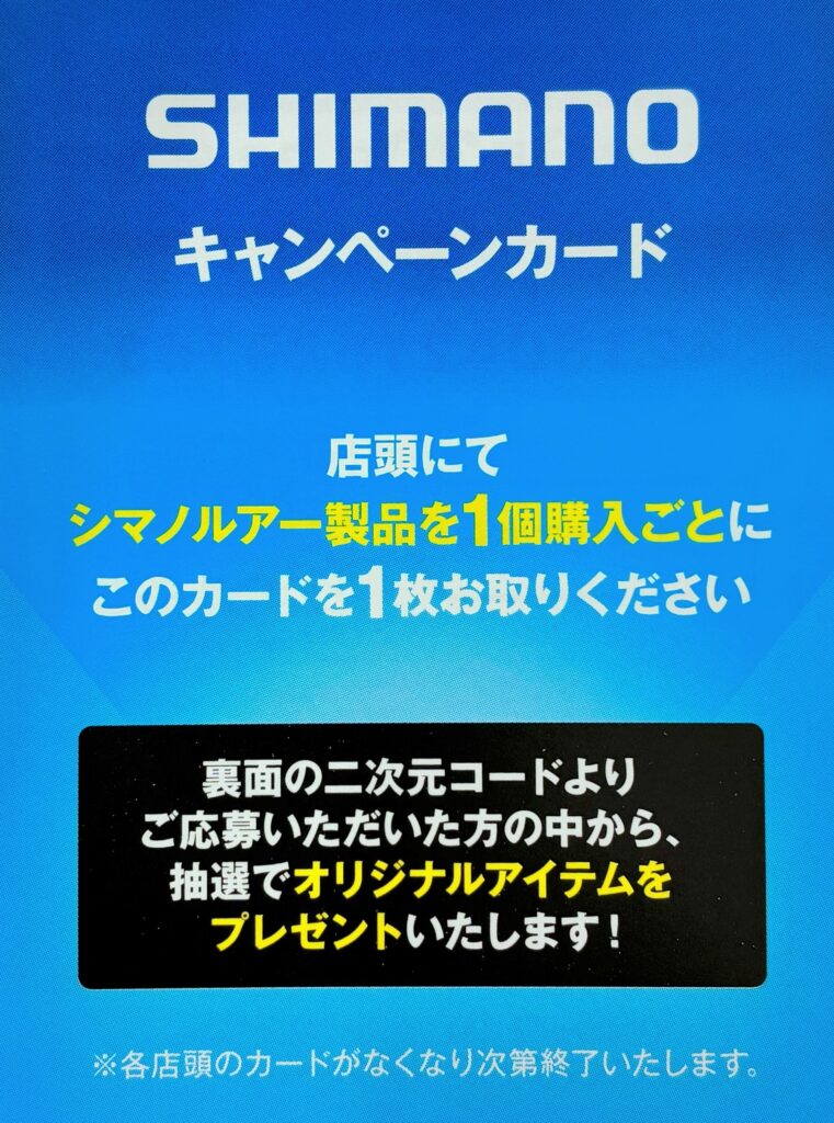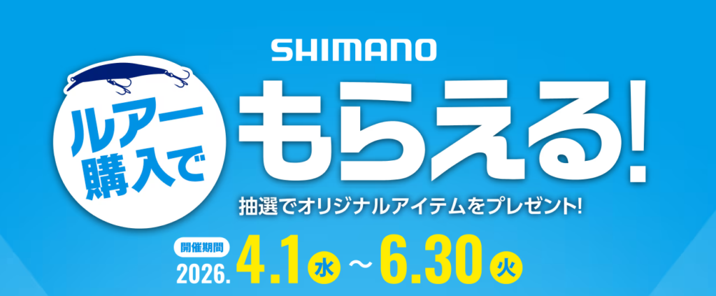 期間中にシマノルアー購入でもらえる抽選券で応募すると限定オリジナルグッズが貰えるチャンスです!!
