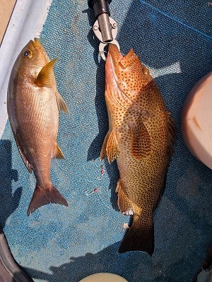ダブルヒットもあり、良型も混じり、50㎝超えのオオモンハタなども混じりました。