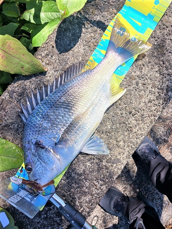 30㎝程のキビレチヌ! 使用ワームはダイワ:アーバンツイスター