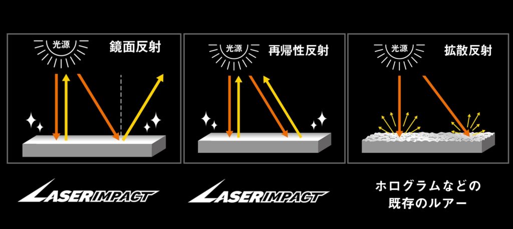 ホログラムなど、従来のルアーで用いられている反射方式は「拡散反射」であり、