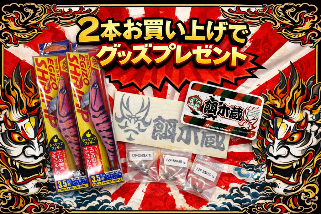 現在、餌木蔵シュリンプ2本ご購入頂くと