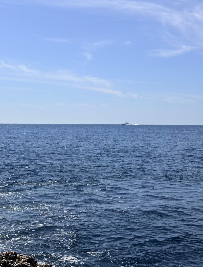 沖を走る海上保安庁の巡視船をのんびりと