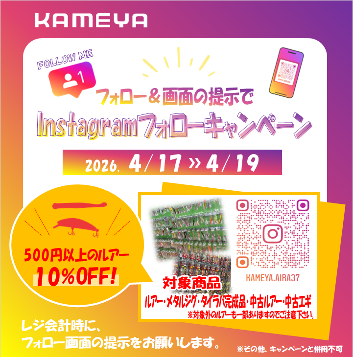 単品500円以上のルアーが、当店アカウントフォロー画面のご提示10%OFFとなります!!
