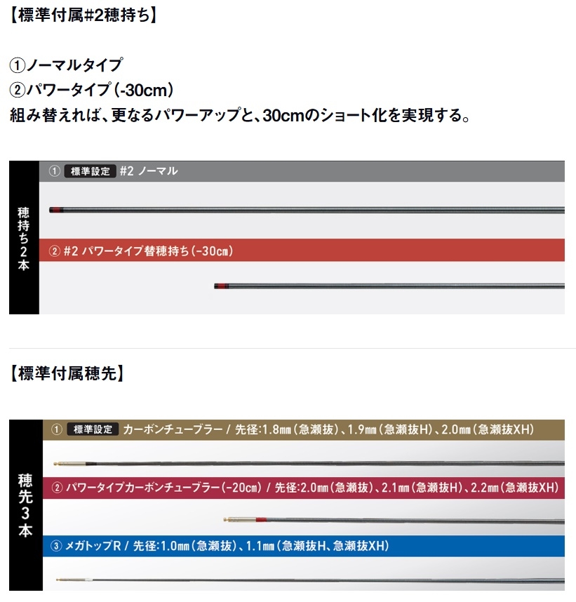 7本継ぎでしか採用していないスイッチシステムが今作から採用され、穂持ち2本・穂先3本が標準装備!これにより6通りの調子を実現できるという優れもの!(^o^)
