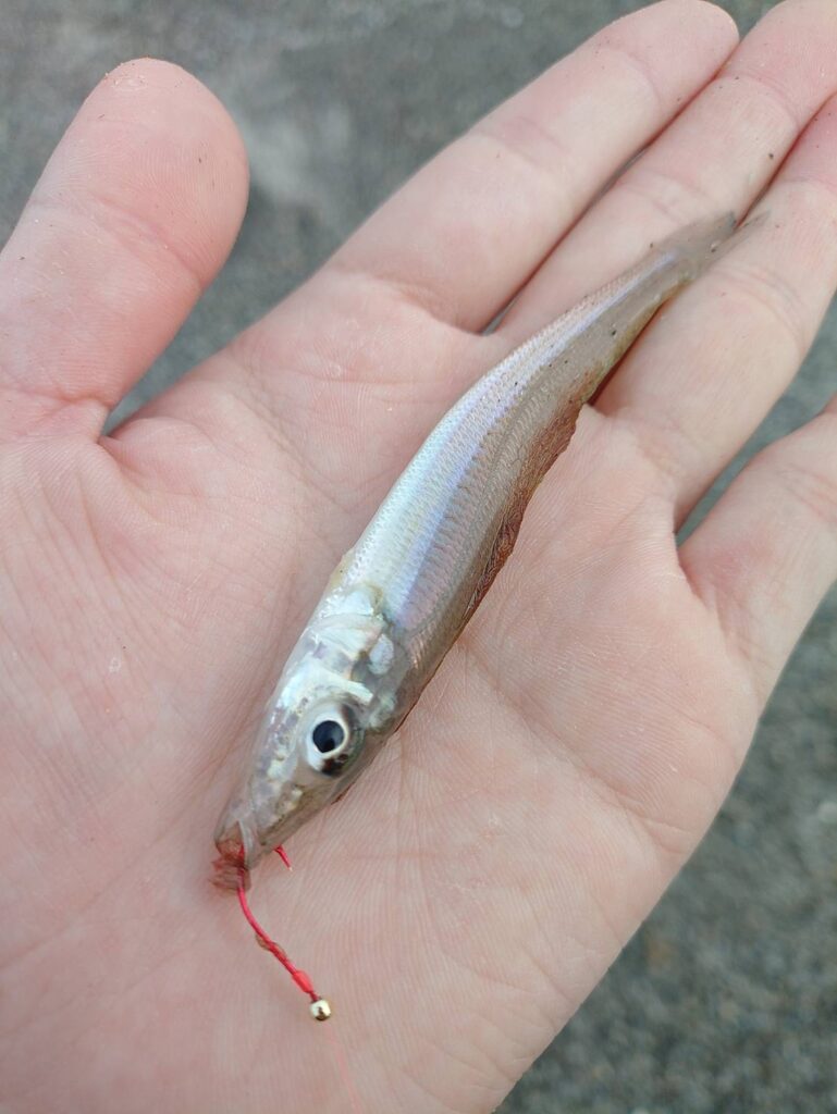 上がってきたのは、10㎝位のピンピン(ピンギス)