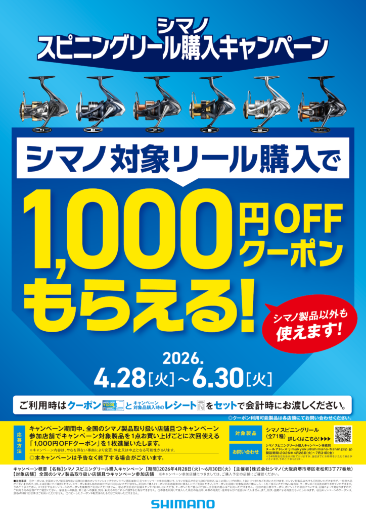 期間中、対象となるシマノ製スピニングリールをお買い求め頂きますと、