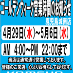 まもなくゴールデンウィークがスタートしますので当店の営業時間についてお知らせ致します