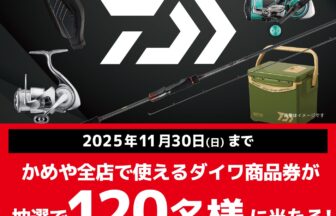 おはようございます!かめや釣具宮崎店です只今ダイワボーナスキャンペーンを開催しております!かめや全店で使えるダイワ商…