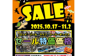 こんにちは!宮崎店です!只今、ハロウィンセールを開催しております!!!ロッドやリール、クーラー等数多くの商品がセール…