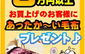 緊急企画!!5万円以上お買上げで毛布プレゼント!!
