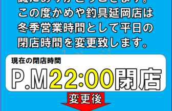 営業時間変更のご案内-かめや釣具延岡店-