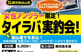 こんにちは!かめや釣具鹿児島谷山店の中野です(*^▽^*)3月29日(日)に❣第3回❣🌸女性限定🌸🎣タイラバ実釣会🎣開…
