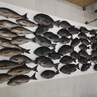 枕崎近海にて船からのコマセ釣り、チョロ釣りにて30~40㎝のイサキが半日14匹の釣果でした。当日は潮と風がケンカしている状況が多く潮の流れが不安定ながら…