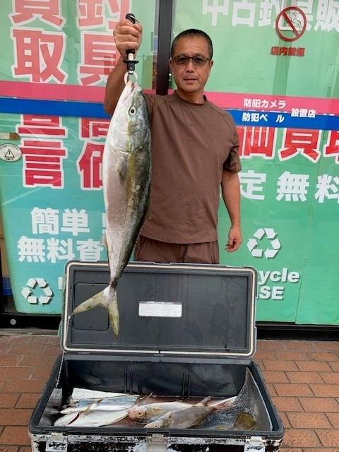 常連の野口様より 良型ブリのお持込みです(^^♪ 全長87cm 重量8キロ その他にもニベやタチウオやネイゴが多数釣れています(#^.^#)