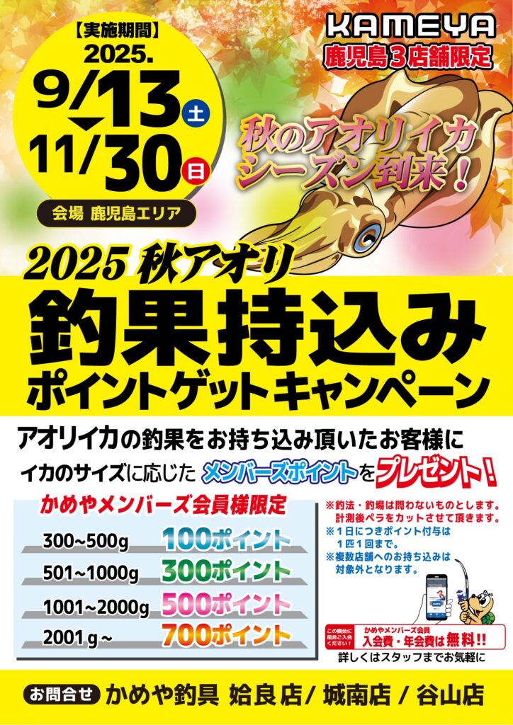 アオリイカの釣果お持ち込みでポイントゲットキャンペーンを行っております。