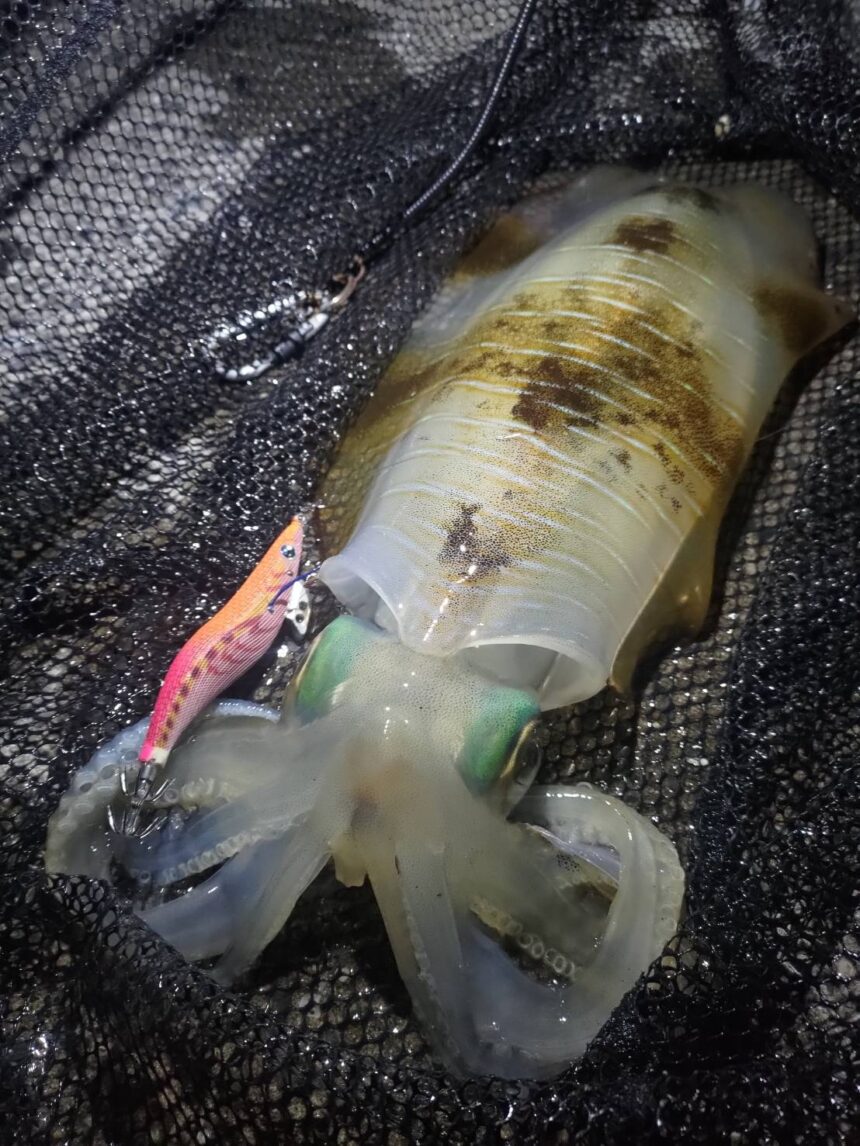 市内河川河口にて950g程のアオリイカ!