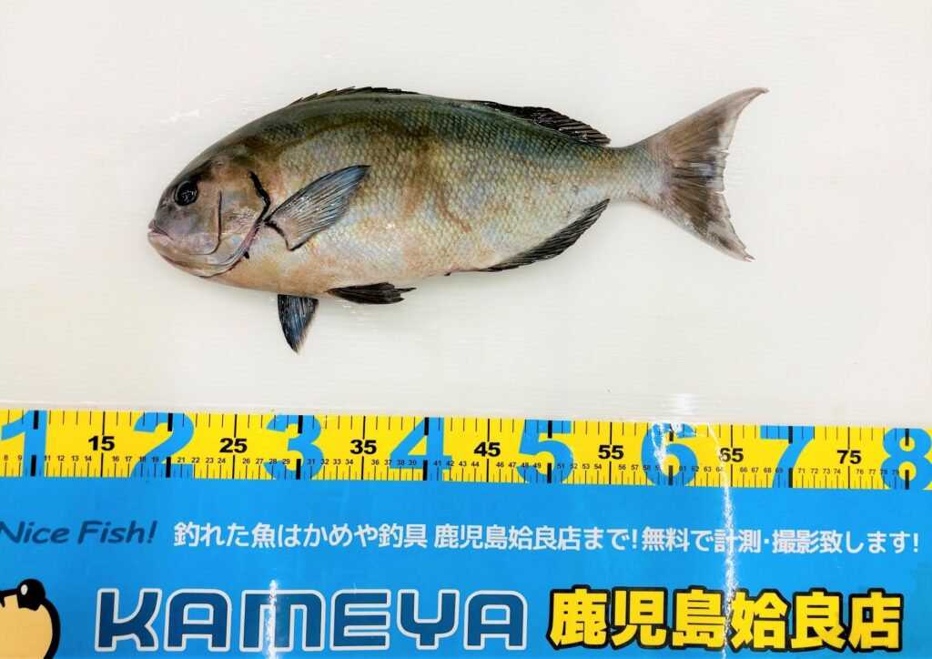 指宿沖でのコマセ釣りにて尾長グレ52㎝の釣果です。
