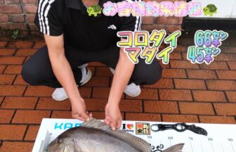 お魚のお持ち込みをいただきました。先日に引き続き、ありがとうございます♪ 釣り方はアジの泳がせ釣りです。エサのアジを釣るのに使用しているサビキは当店オリジナルの ALIVE ピンクサビキ5枚パック 5号。ちもと部分の畜光玉が効果があるとのことでコレを持っていけば間違いないとのことでした!マキエも当店のアミエビブロックを使用しています。アジも7匹釣られております。いつもお持ち込みありがとうございます。またのお持ち込み待ってます。