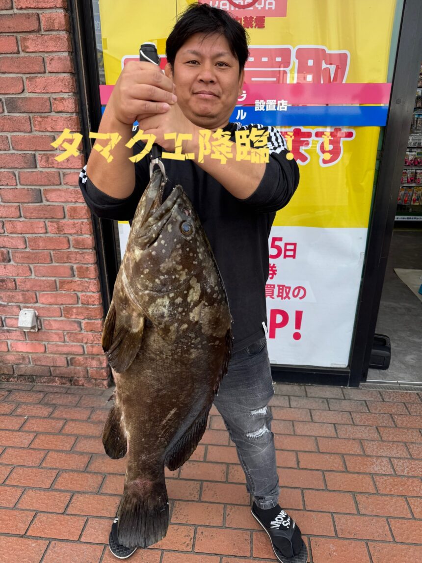 こんにちは!フィッシング都城の相澤です!本日、タマクエのお持込みがございました!全長.82.0㎝ 重量11.13kg桜島での釣果だそうです!おめでとう御座います!!また、デジタル魚拓の作成も承りました!お持ち込みいただきまして、誠にありがとうございました❣️