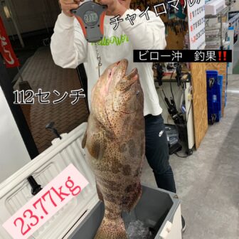 フィッシング都城岩下です⭐️11月3日志布志沖‼️にて⁉️チャイロマルハタをキャッチされました♪(*^^)o∀*∀o(^^*)♪全長112センチ重量23.77kg釣法ジギング❣️ビロー…
