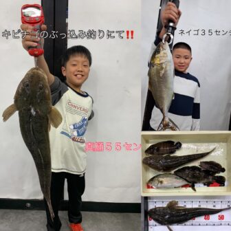 垂水方面で、真鯒55センチを筆頭にタマクエやヤミハタなど、ネイゴまで❣️爆釣の日でした🤩キビナゴ釣法にて🥳おめでとう御座います㊗️#マゴチ#真鯒釣り#キビ…