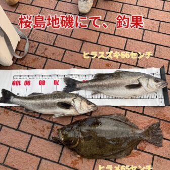 こんにちは!!フィッシング都城の相澤です!!本日、桜島地磯にて、釣果のお持込みが御座いました!!ヒラスズキ66㎝を筆頭に2本ヒラメ65㎝!!ナイス良型で…