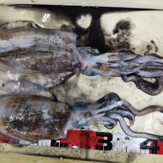 はいどぉもーかめや釣具城南店の前田です!お客様より釣果お持込み頂きました! 甲突川河口近辺にて300g程のアオリイカ釣果!…