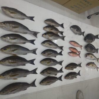 はいどぉもーかめや釣具城南店の前田です!お客様より釣果お持ち込み頂きました! 久多島沖にてイサキ・ネリゴ・ヘダイ・グレ…
