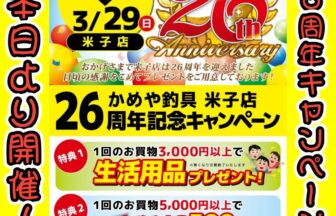 かめや釣具米子店26周年キャンペーン開催🎉
