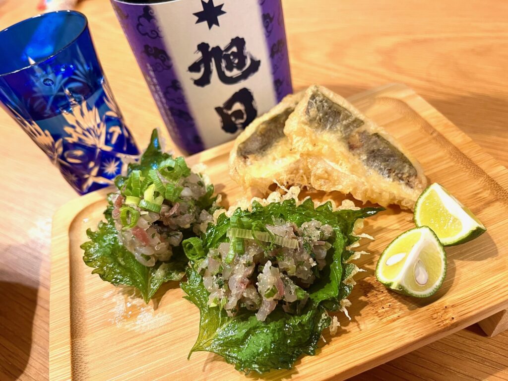 天ぷらとなめろう。