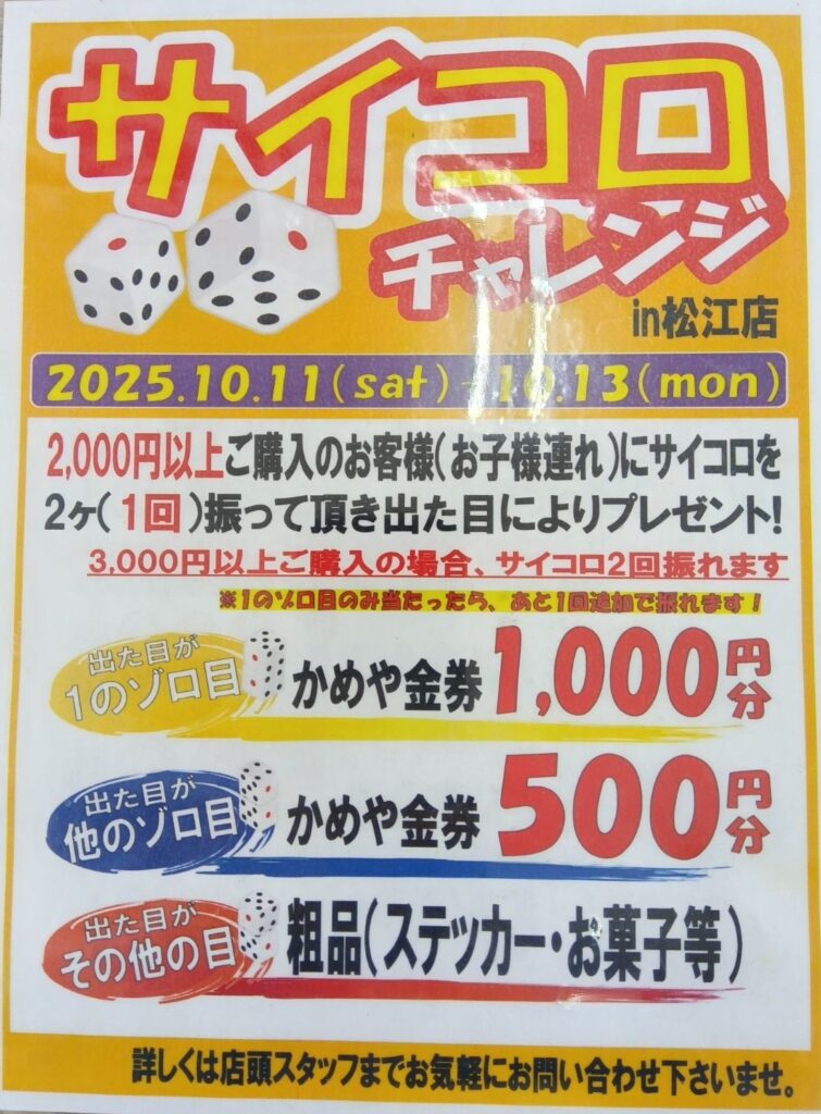 3000円以上お買い上げなら2回振れます(‘ω’)ノ
