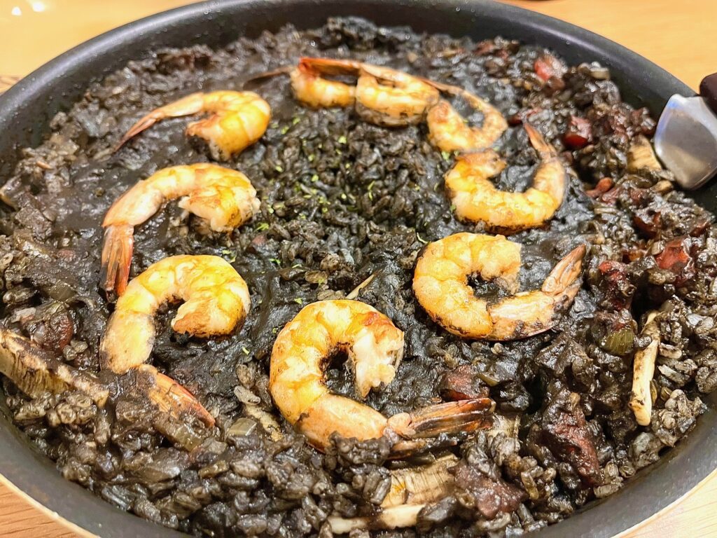 焦げてません。イカ墨トマトパエリアです。