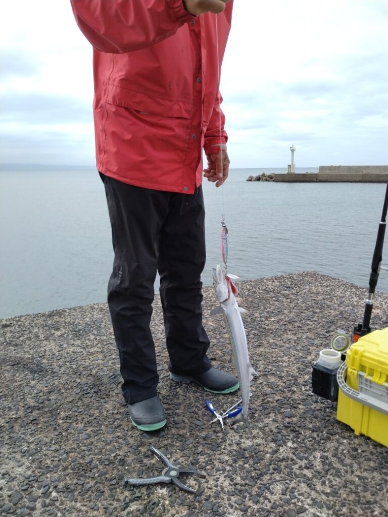 この日は赤灯台付近がよかったそうで、ちょうどブレードジグでヒットしていました!!