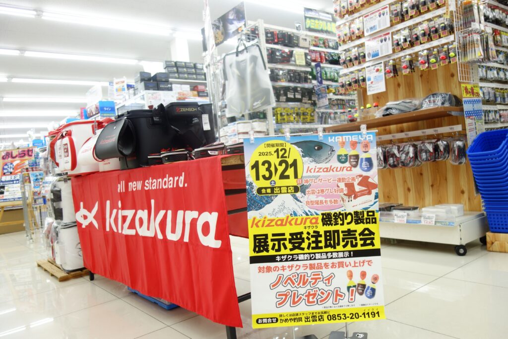 只今、店内イベントでキザクラ様の磯釣り関連商品展示中!