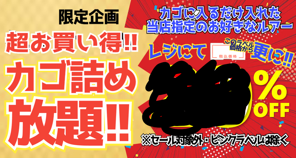 1/1~1/4まで、カゴに入ったルアーがほぼ全品~%オフです!