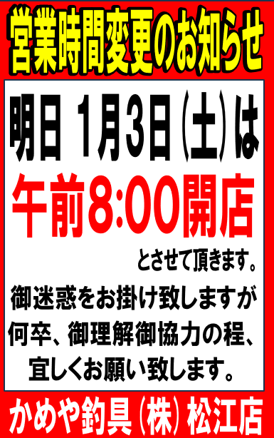 松江店 1月3日 営業時間変更のお知らせ