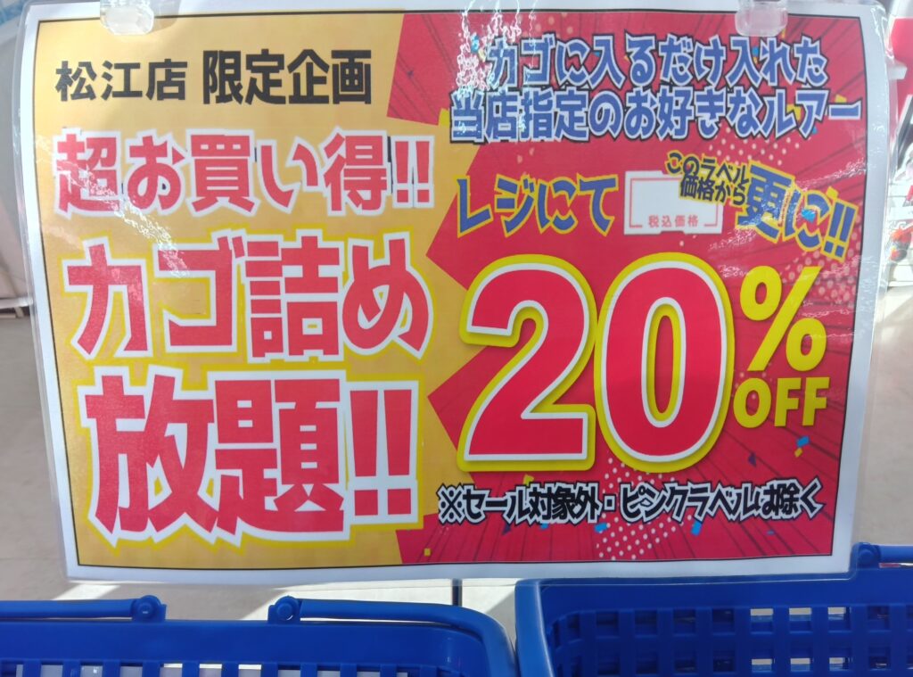 ルアーカゴ詰め放題20%OFF!