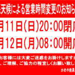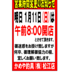松江店 1月11日(日) 営業時間変更のお知らせ