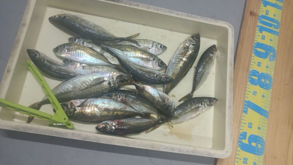 まさに一投一尾状態でアジが釣れ続けます。