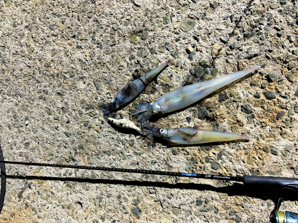 エサ巻きエギでオスがヒットし、後ろから2杯付いてきていたため、続けてその2杯もゲット!