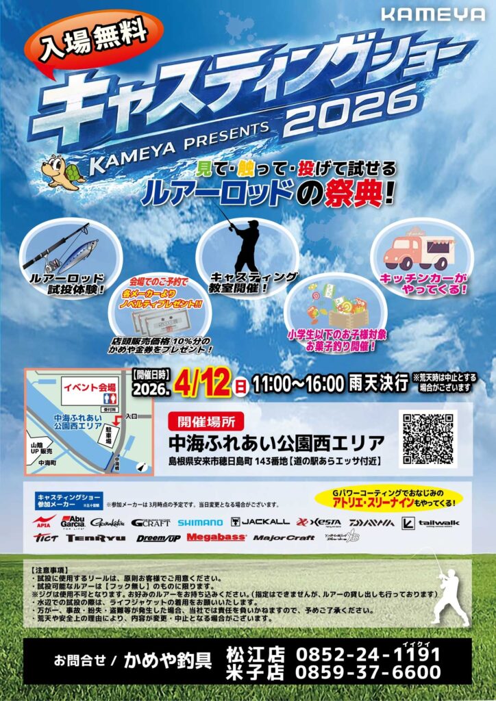 入場無料ですので、リールご持参の上ご来場下さい。