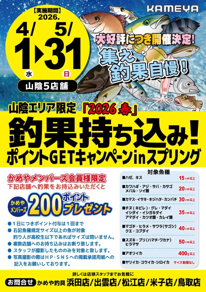 かめや釣具屈指のなんともチョロいキャンペーンです。