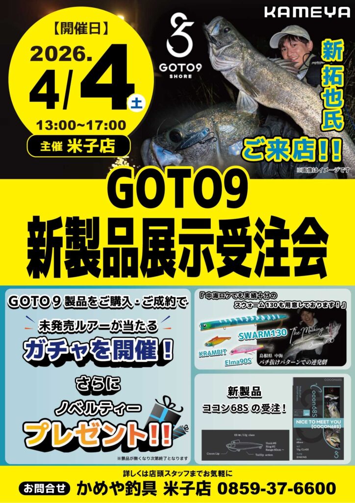 米子店では、今話題の”GOTO9”様の”新製品展示受注会を4月4日に開催致します。