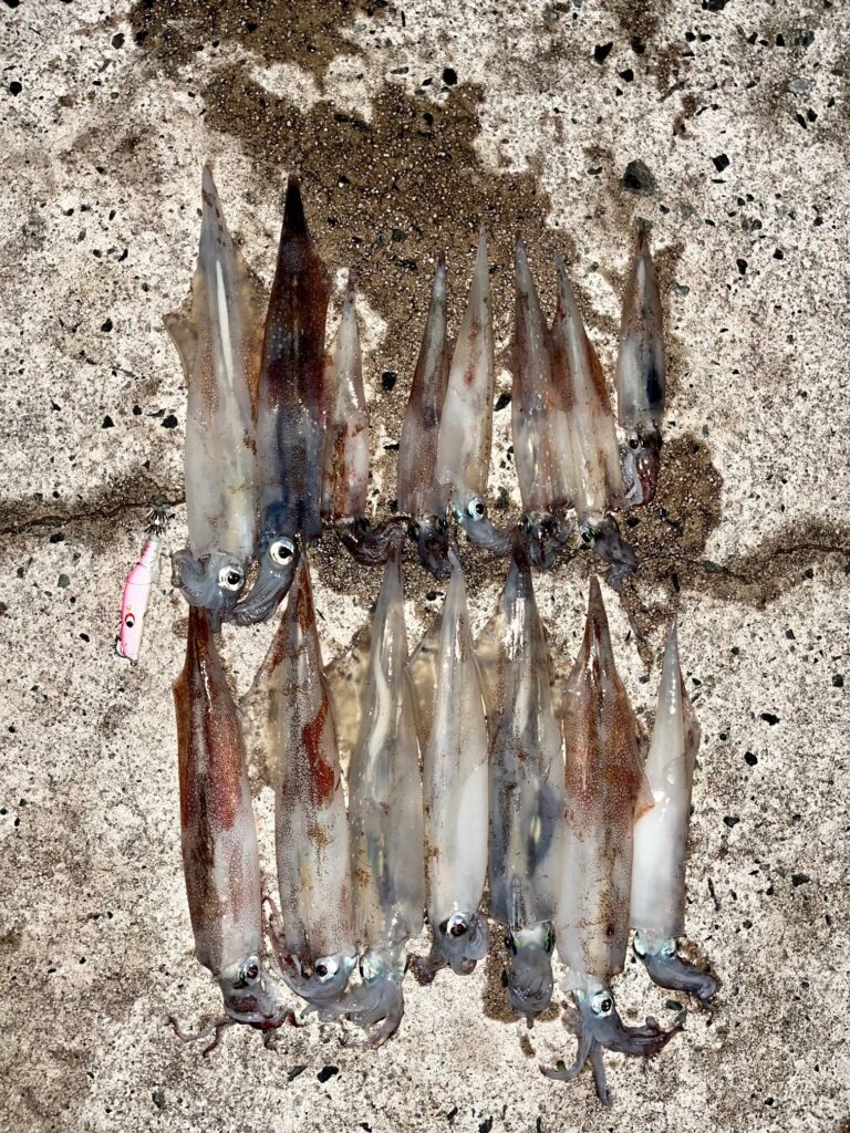 アオリイカやコウイカも狙ってはみましたが釣れず、大雨も降ってきたため撤退💦