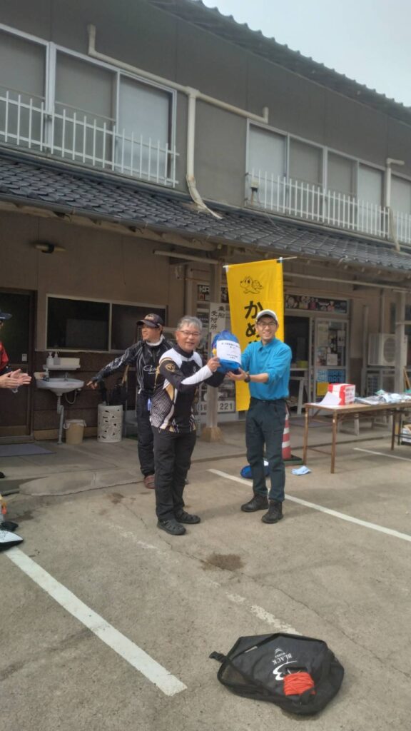 (三位の松田さんは目玉景品の明桜ウキ賞と集魚材1箱をダブルゲット・・・強運すぎましたw)
